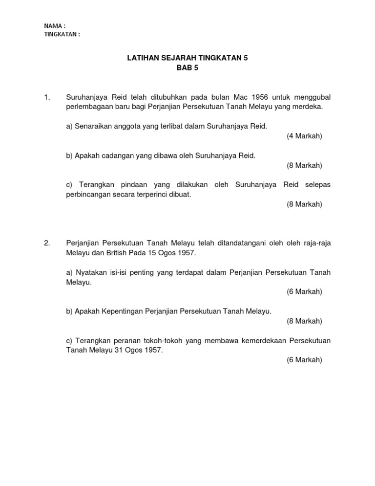 Latihan Sejarah Tingkatan 5 Pdf