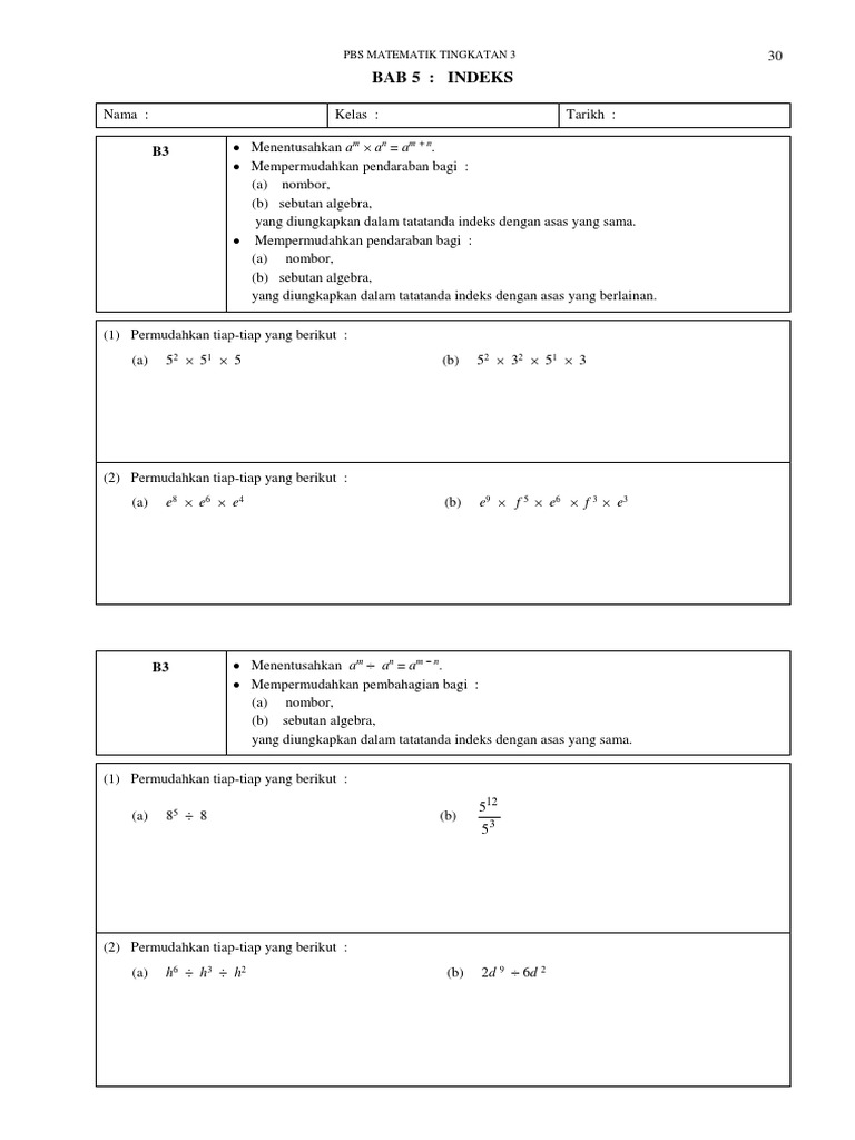 Pbs Matematik Tingkatan 3 Bab 5 Indeks Pdf